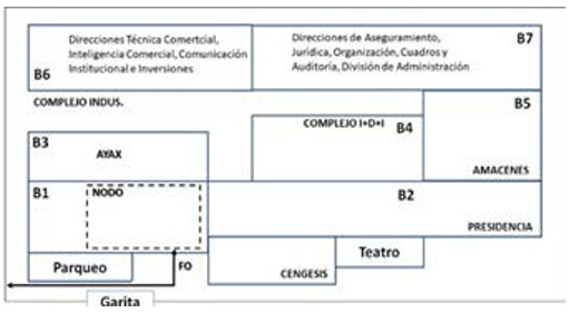 SEISA está conformada por una sede central ubicada en calle 87 entre 114 y 122, Marianao, La Haba- na. En esta instalación se encuentra el ápice estratégico conformado por la Presidencia, el Complejo Industrial, el Complejo I+D+I y algunos componentes de la tecno-estructura como son las direcciones, la división de apoyo, algunas de las gerencias que se convertirán en empresas filiales y una de las sucursales que la conforman (AYAX) (ver figura 1).